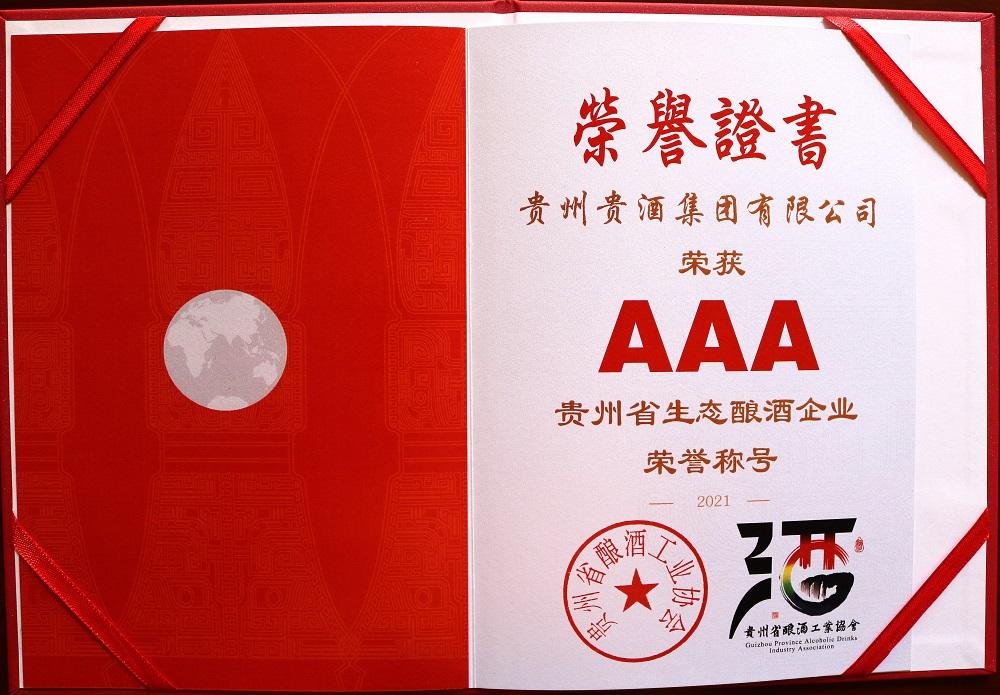 貴酒集團榮獲3A級貴州省首屆“生態釀酒企業”榮譽